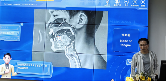 联合实验室彭志峰、龙润田、吴南开三位老师分别以方言数字资源建设、语言学课程开发、虚拟仿真技术与应用案例成果为主题进行汇报,同在座专家一同探讨方言资源建设与文化保护、传承和创新的数智化结合路径,以及本科生语言学课程的实践,展望AI大模型背景下方言口音识别技术的发展方向、机遇和挑战。